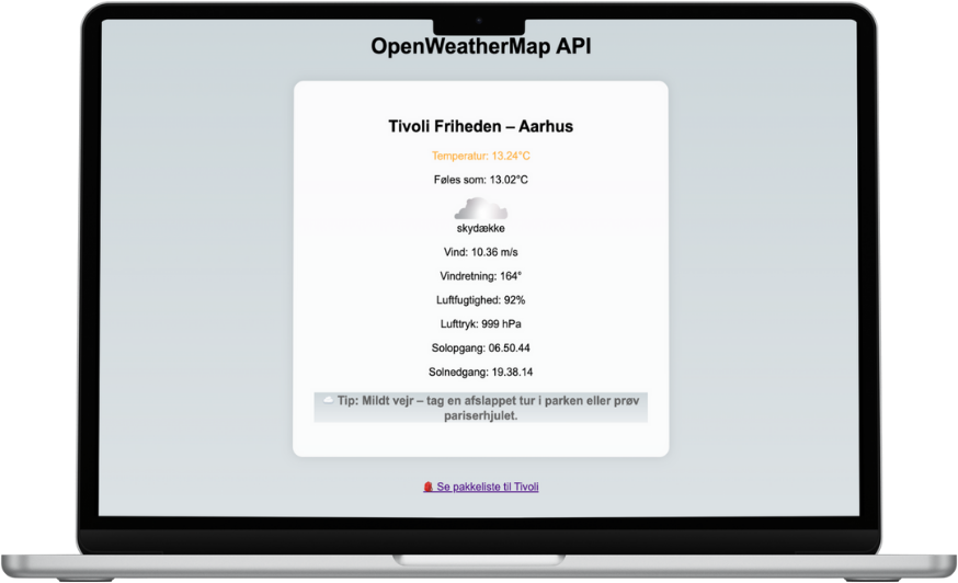 Dette er et kort skole projekt hvor i jeg viser at jeg kan programmer en hjemme side, hvor designet og indholdet ændres ud fra vejret på lokationen.